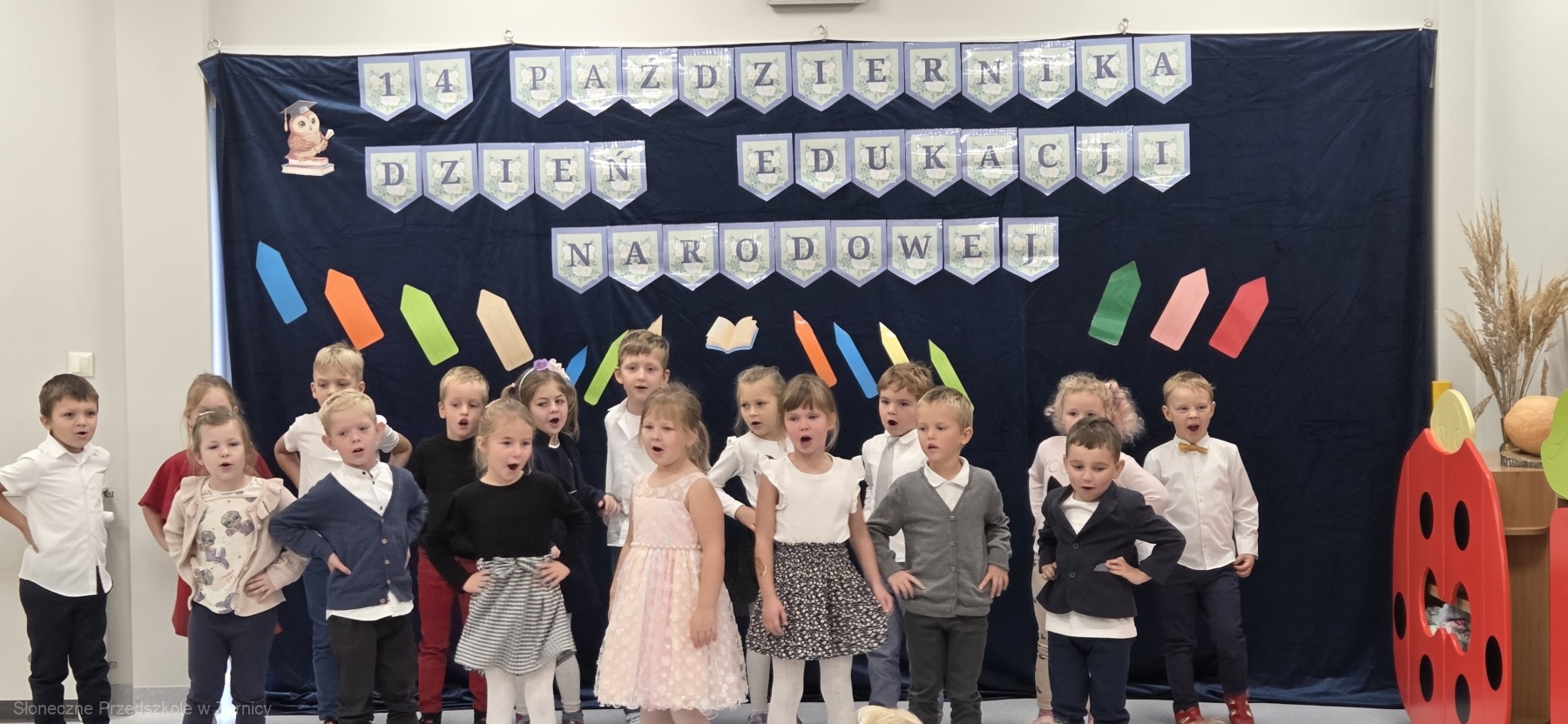 We wtorek, 14 października w naszym przedszkolu obchodziliśmy Dzień Edukacji Narodowej. To wyjątkowe święto wszystkich nauczycieli, wychowawców oraz pracowników oświaty. To dzień pełen wdzięczności, uśmiechu i ciepłych słów skierowanych do tych, którzy każdego dnia z oddaniem troszczą się o wychowanie i rozwój dzieci.