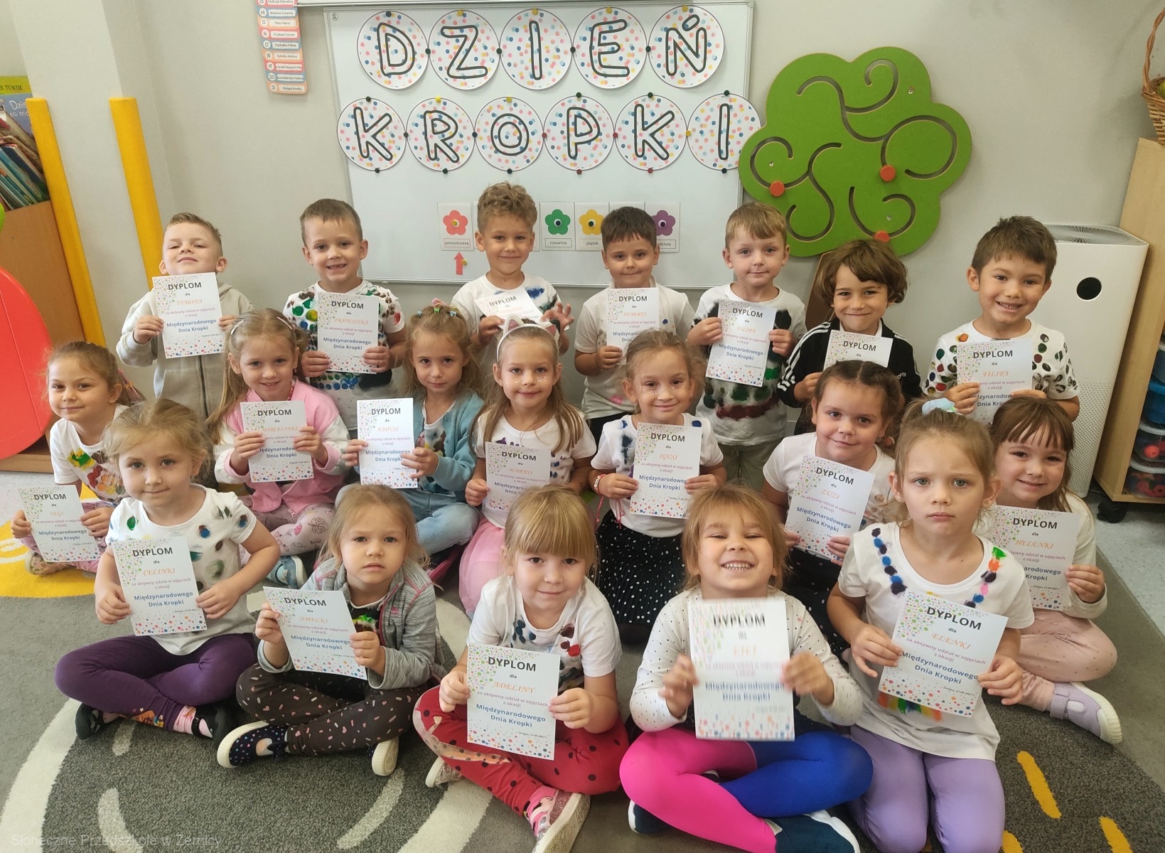 Międzynarodowy Dzień Kropki w naszym przedszkolu był pełen uśmiechu, radości i pozytywnej energii. Dzieci miały okazję rozwijać swoje zdolności, budować wiarę w siebie i przekonać się, że nawet najmniejsza kropka może być początkiem wielkich odkryć.