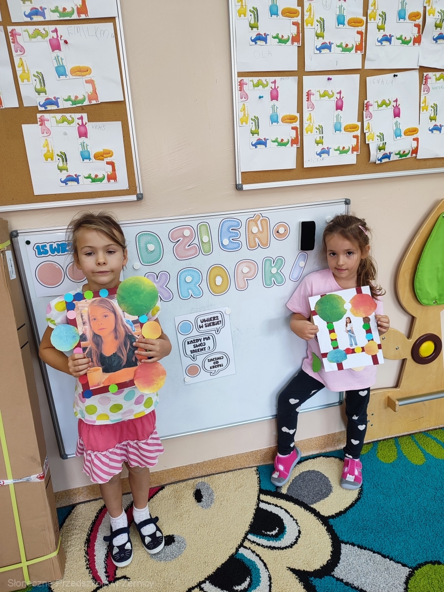 Już od samego rana w salach można było poczuć wyjątkową atmosferę, kolorowe dekoracje i różnorodne rekwizyty z motywem kropki zachęcały dzieci do aktywnego uczestnictwa w zajęciach. Przedszkolaki brały udział w zabawach plastycznych, w których ich zadaniem było tworzenie prac pełnych kropek i kropeczek, małych dzieł sztuki ukazujących ogromną wyobraźnię i pomysłowość dzieci.