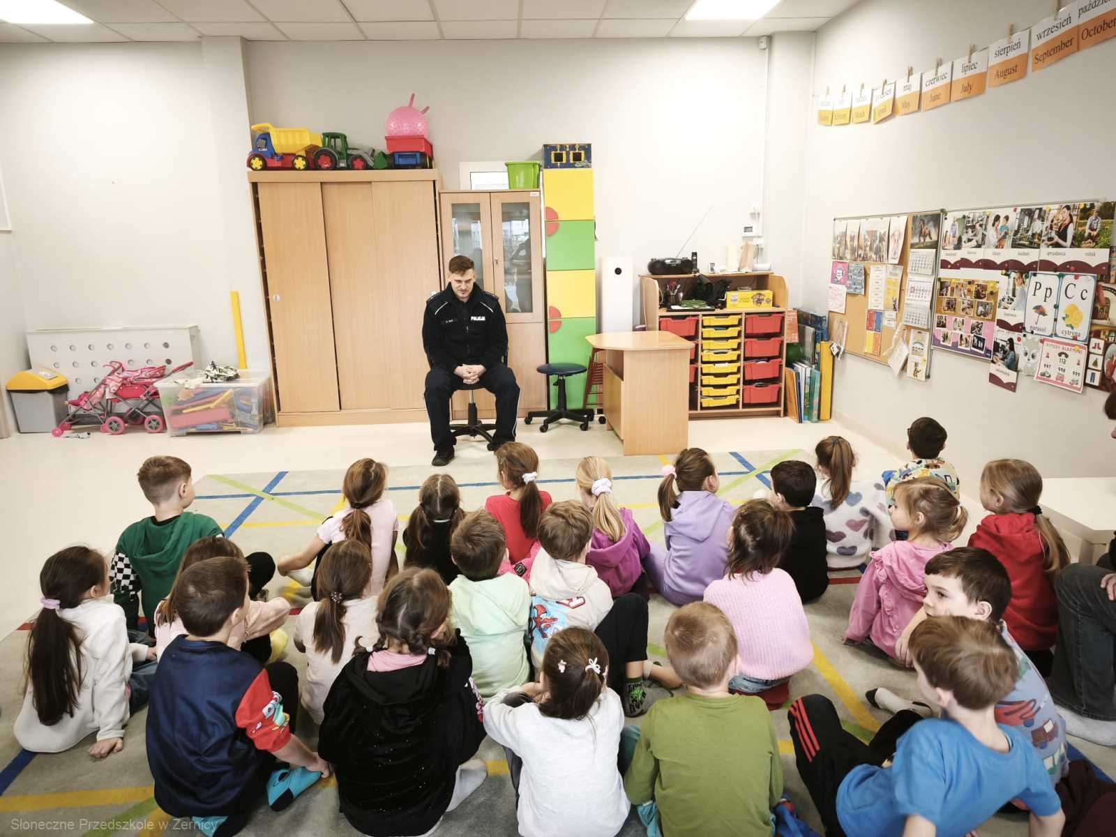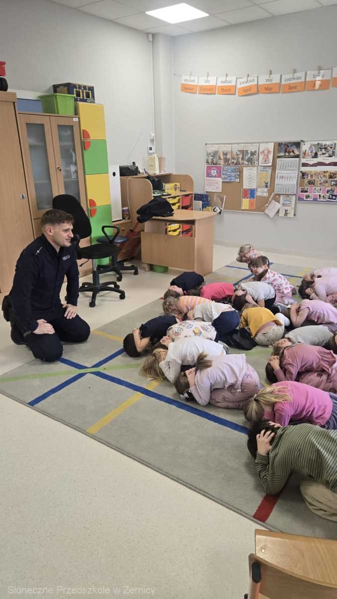 Podczas wspólnych zajęć dzieci poznały numer alarmowy 112 oraz dowiedziały się, w jakich sytuacjach należy z niego korzystać. Przedszkolaki uczyły się, jak prawidłowo wezwać pomoc, jakie informacje przekazać dyspozytorowi oraz jak zachować spokój w trudnych sytuacjach. Rozmawialiśmy o zagrożeniach, z jakimi dzieci mogą spotkać się w domu, na podwórku i podczas zabawy.