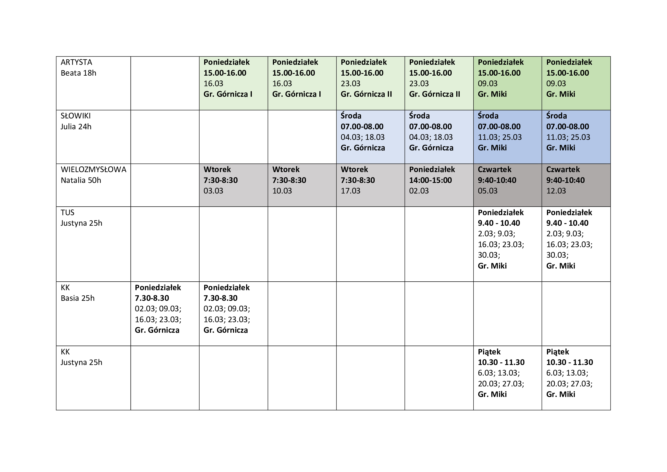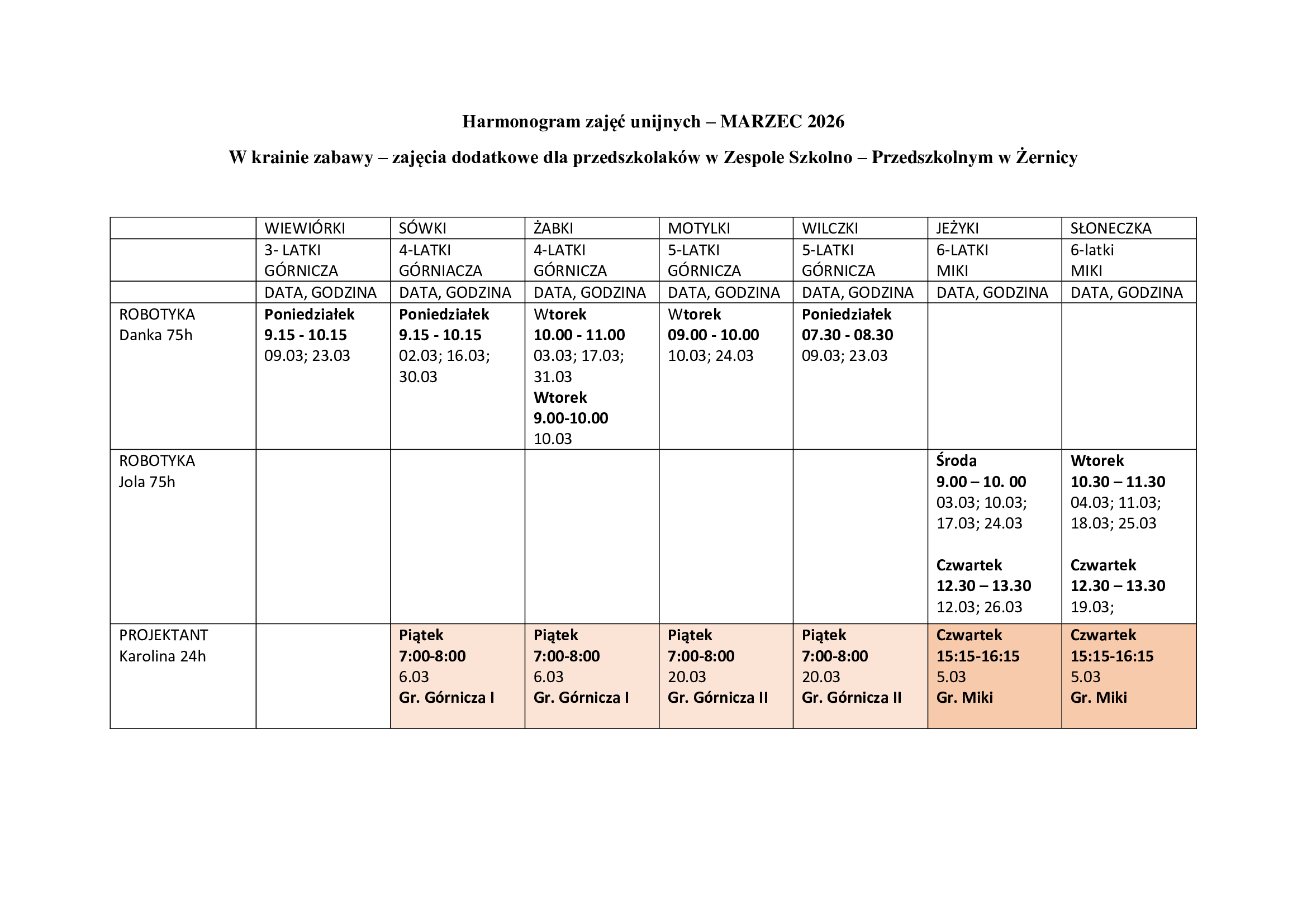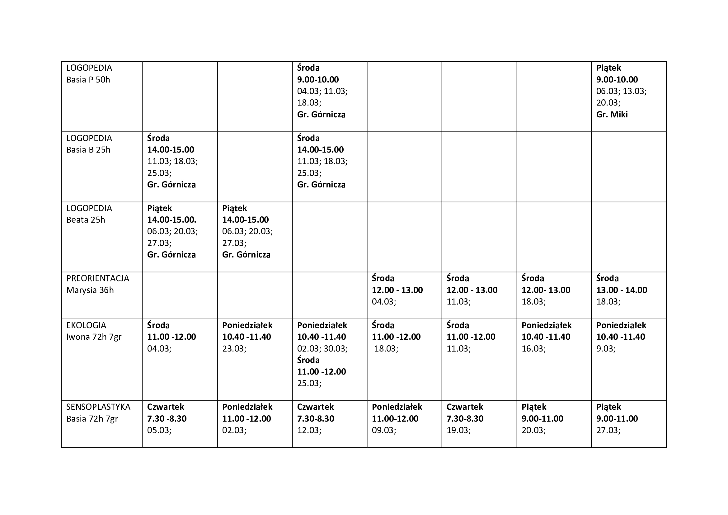 – 13.04, 14.04 – odwołane zajęcia sprawnościowo – zdrowotne w grupach Wilczki, Słoneczka;